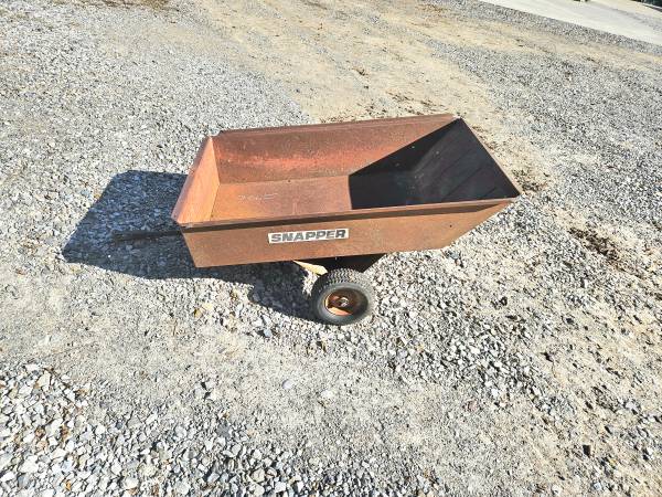 Snapper dump lawn trailer has good hard tires never have a flat 47 in long 29 1/2 in wide 9 inches deep in good shape price $125.00 cash only no checks or cash apps of any kind thank you 😀