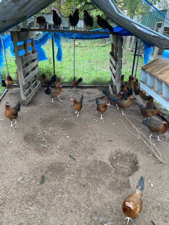 Red hens are Roundhead $25 each the grays are young they are flurry eyed gray toppys $20 each