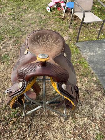 This is a hard to find Billy Cook Classic 14.5” Roper. This lil saddle is cleaned/Conditioned and ready for whatever you have in mind. Rawhide rolled cantle & sturrips basket stamped, padded seat all in Billy Cook Classic style. (Break away Ropers perfect saddle. I can’t say enough about this great saddle. The Tack Shak. Shipping available at Buyers expense