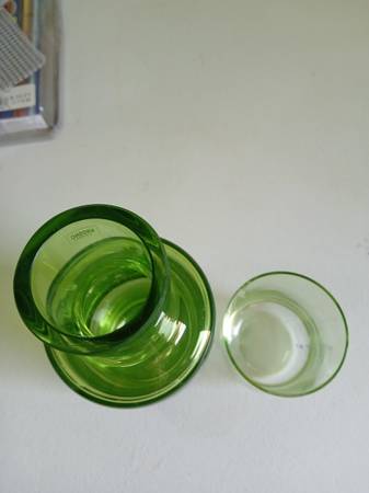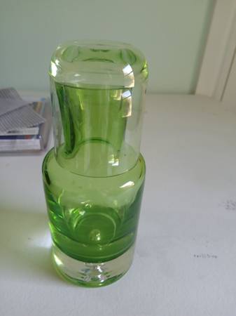 Green glass bedside water holder & cup, no chips or cracks CASH ONLY