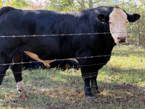 For Sale: Simmental Bull, black/white face, almost 4 years old, low birth weight, gentile, semen tested. Asking $5,000. Call Bill at . No text please.