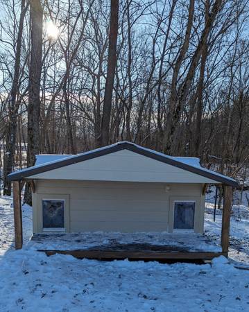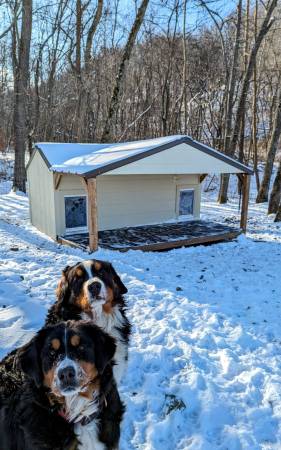 We have a beautiful 2 year old insulated dog house that was only used while we were breeding our Bernese Mountain Dogs and for baby chicks in the winter. It currently has a heater inside of it and has an air conditioner, though the air conditioner doesn't seem to be working currently. We paid $3750 for this dog house and it has worked really well for its purpose, but we have stopped breeding and don't want it to sit out and go to waste. I added click-lock flooring to the inside.