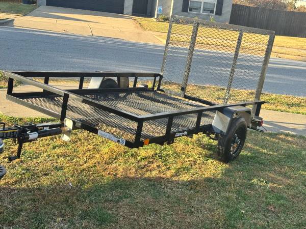 CARRY ON 5X8 PULL METAL MESH TRAILER LIKE NEW HAS JACK STAND LIGHT IN WORKING CONDITION WITH RAMP GATE !!ONLY SERIOUS BUYER!! TITLE IN HAND interested text SOLD AS IS!!!