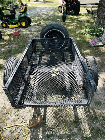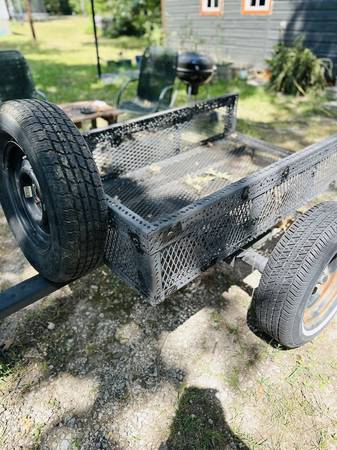 3' x 5' farm trailer metal bed with strong axel off road use only - no fenders/lights Good hitch and jack stand $300 pick up in east Rogers call or text