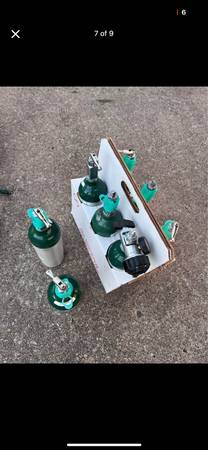 46 cannulas, 6 new (full) tanks, 3 partially full, 2 regulators and a portable oxygen on the go carry-case. Used for about 5 years, nothing wrong with it. Hours on machine is 8594. Works great. Public meetup in gentry arkansas, cash Only