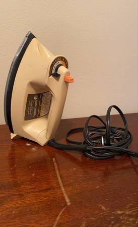 Steam or Dry Clothes Iron: works great (gets hot and steams) Salt and Pepper Shakers Rugs Clock Girl Pig Animal Print Pillow Navy Basket Gold Mesh Bag Diffuser Round Glass Bowl with Feet Fruit...