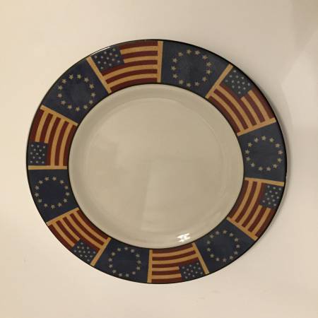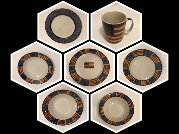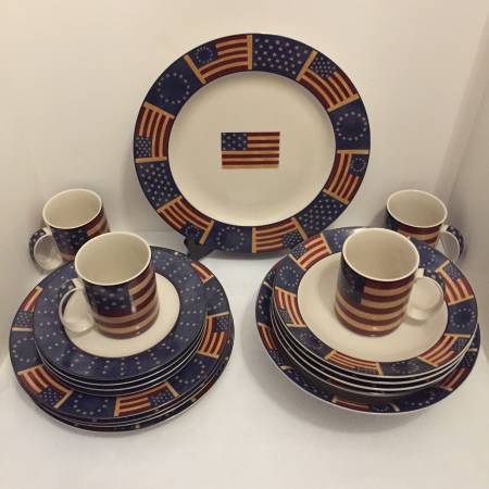 Liberty by Coventry (PTS), American and Colonial Flags on Rim, CVNLIBE, 1998, Vintage, Collectible, Discontinued, this 19-piece service for 4 includes: