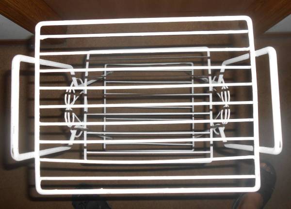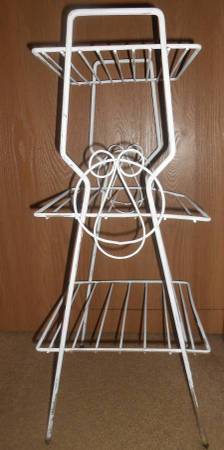 White metal multi-purpose rack/shelves Three (3) shelves, great for kitchen, dining room or garage. Lightweight and very sturdy!