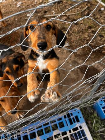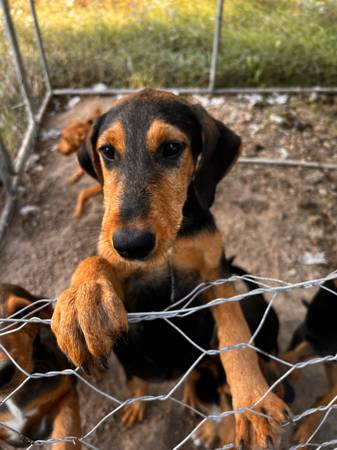 Quarter basset hound, quarter catahoula other half is Airedale terrier Have 6 pups left 2 females left the rest males