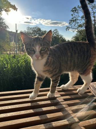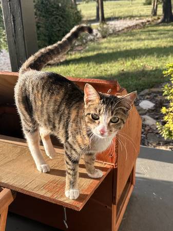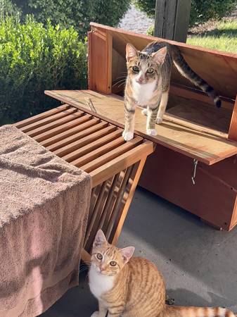 Two female kittens born Easter 2025. Not spayed. Very friendly outdoor kittens that spend the majority of their time on our front porch or following us around. Very used to other people, kids, and German Shepherds. Greater mousers, but also would transition well to being inside. FREE! Looking for good homes and located in Huntsville, AR. IF THE LISTING IS STILL UP, THEY ARE STILL AVAILABLE.