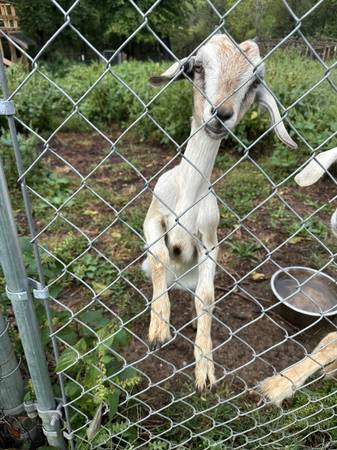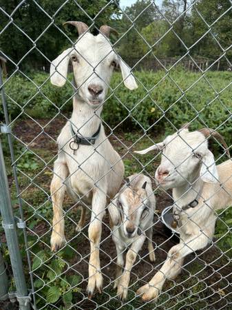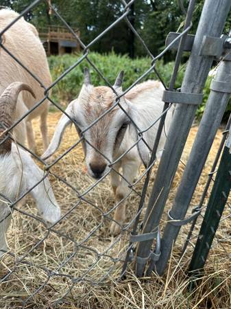 Two Kiko goats does available in Huntsville, AR for pick up only. Would prefer they go as a pair. One born March of 2023 and has given birth to two healthy kids this spring. Doeling born February of this year (not related to the other) from a registered male Kiko. Both are excellent and very friendly goats and used to large dogs. Looking for new homes as we are downsizing. Doeling's dad is shown in the third photo. IF THE LISTING IS STILL UP, THEY ARE STILL AVAILABLE.