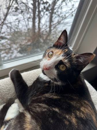 Artemis is a Calico who is 3 years old. She is incredibly sweet and loves to meet new people! She loves to bird watch and sit next to you while you watch your favorite shows. She also will hunt all of the bugs in your house for you!