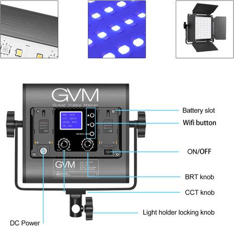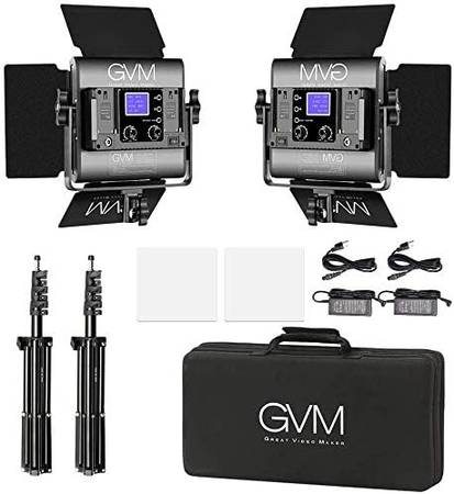 1 GVM model 800D RGB 40W 2 Field Lights with Tripods and power packs and 4 NP-750/770 batteries (each monitor takes 2)
