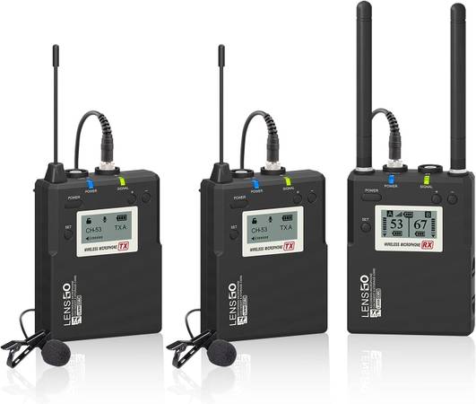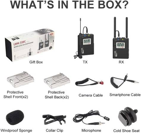Clearer TFT Display Screens: Newly adopted bright, high-contrast TFT display screen for LWN-338C wireless lav mics transmitters and receiver, it shows current recording mode, battery status and audio level, gain and more intuitively under environment of different lights