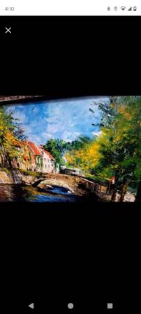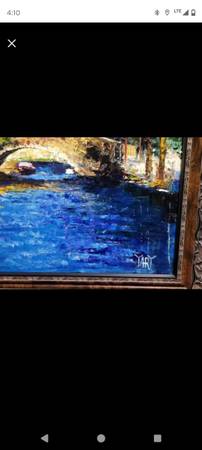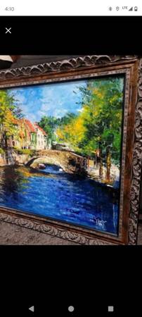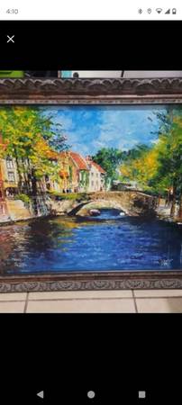 Yary dluhos "A Day In Amsterdam" oil on canvas painting framed. Painting is in good condition.comes with certification of Aunthenticity. Dluhos fine Art. Frame is still good with minor hanging flaws but nothing serious. More pictures upon request painting is sold as is. Its been appraise by a ART GALLERY. Price $3500
