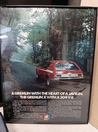 Vintage American Motors factory advertising framed ready to hang. Carefully removed from 70's magazines. Please text if interested I have other AMC stuff too