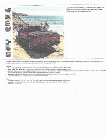 5.8 FT Truck Bed Tonneau Cover FRP Hard Tri-Fold for 2019-2025 Chevy Silverado/ Gmc Sierra 1500 new style. with a universal Ladder. As always CASH and CARRY. NO HOLDS First come with cash take it...