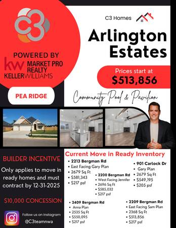 C3 Homes proudly presents Arlington Estates! Buyers may be eligible for up to $5,000 in lender credit when using our preferred lender. Buyers who go under contract in the month of November will receive a $10,000 Builder incentive towards closing costs and prepaid items! That’s real Money!!!