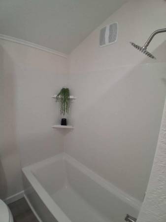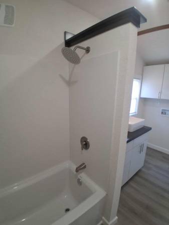 *Egyptian Duravant, deep soaking bathtub with custom solid surface tub surround and shelfs