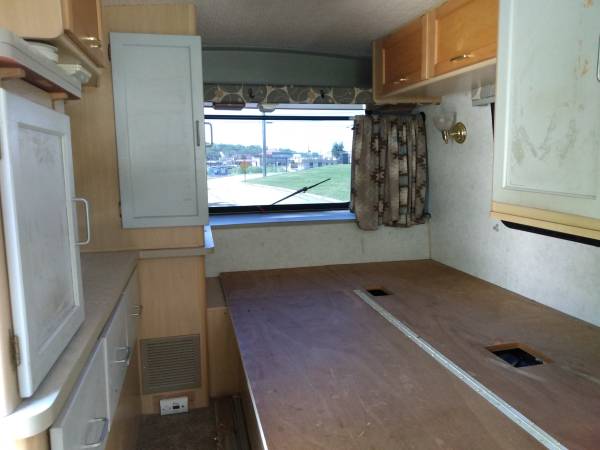 No leaks (new skylight). This is the FD model -- full size bed in rear. No mattress. Everything works (except generator).