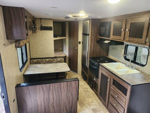 2017 kz sportsman with bunks. Good condition. Put new Frigidaire fridge/freezer in but runs on electric only. Priced to sell. Calls only please. Located in gentry. 406 six79 five 087. Thank you
