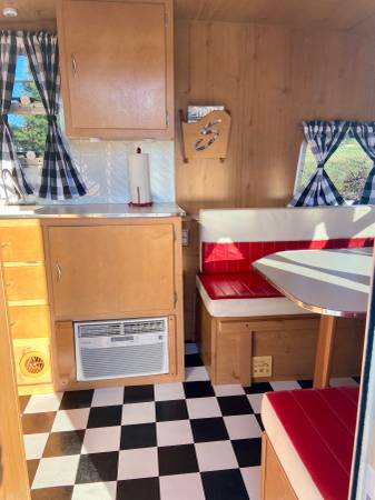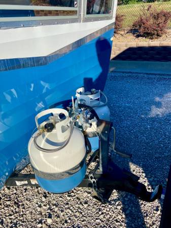 In 2015 Shasta created a nearly exact replica of a 1961 Shasta Airflyte 16SC travel trailer with a few modern upgrades. Shasta ran a limited construction of 1,941 Special Edition trailers and this one is #118. They came in three colors and this one was originally Matador Red, however we had it professionally painted Blue with high quality automotive paint to match our tow vehicle. The interior cushions are still red. Black and White stripped canopy that looks brand new.