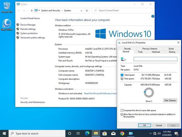 It has an Intel Core i5-3470 CPU running at 3.6 GHz and a 500 GB hard drive.