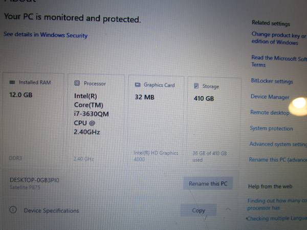 The Toshiba Satellite P875-S7102 features a 17.3-inch, 1920x1080 Full HD display, an Intel Core i7-3630QM processor, and integrated Intel HD Graphics 4000. It has 12GB of DDR3 RAM (expandable to 32GB), a120 SSD GB hard drive and a 320 GB storage drive, DVD SuperMulti drive. The operating system was Windows 8,upgraded to 10 Home and the laptop also included a backlit keyboard with a numeric keypad ..