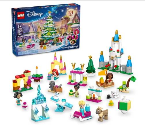 LEGO Disney Princess Advent Calendar, 43253, 2024, New in Box, 24 gifts including Ariel, Elsa, Mirabel, Moana, Pua, Snowgie, Sven and Tiana, only $25, listed on multiple sites, shipping not available, porch pickup off Rupple/Weir, Fayetteville, AR, cash or Venmo. Thank you so much for looking!!