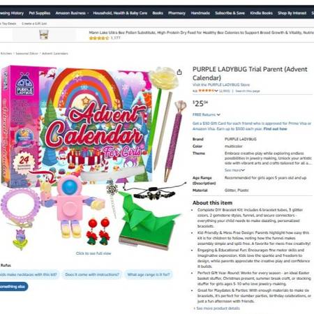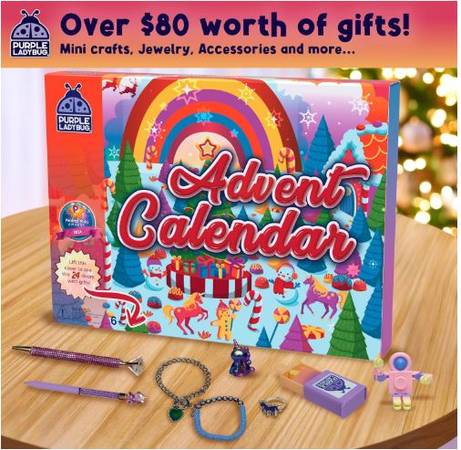 Purple Ladybug Advent Calendar for Girls, New in Sealed Box, only $15, listed on multiple sites, shipping not available, porch pickup off Rupple/Weir, Fayetteville, AR, cash or Venmo. Thank you so...