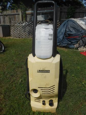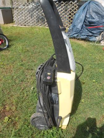 This power washer works that can be fixed and soap dispenser is cracked ….. possibly use for parts or someone might be able to salvage this with a little effort