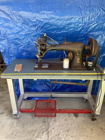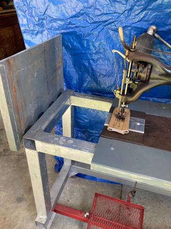 Singer Class 7 (7-31) Sewing Machine on industrial table. #G1072498 Made 1911, repaired and reconditioned last in 2023. YES IT SEWS! YES ITS HUGE! Presser foot rise 5/8” , needle to column 16”, uses type 7x1 (fabric, paper), or 7x2 (leather) needles. See photos for details. (It could use a paint job, but it would sew the same.)