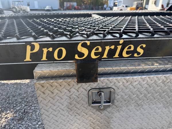Additional features include an electric/hydraulic system with a heavy duty mesh floor and 8 ft. aluminum ramps.