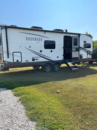 This 2023 Forest River Rockwood Signature 8263 MBR camper trailer is like brand new. Used only three times. We added a back up camera to the camper trailer. Garage kept.