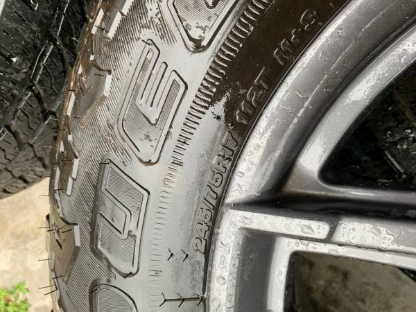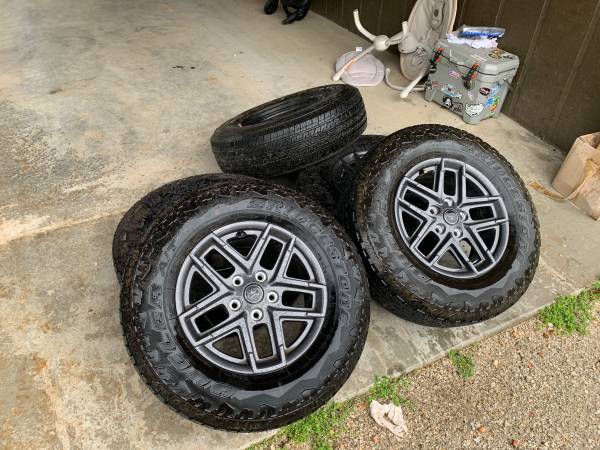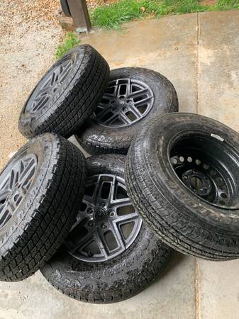 Matching set of 4 with a non matching spare. Came off a 2025 Jeep gladiator. The tires only have around 2k miles on them. Located in rogers